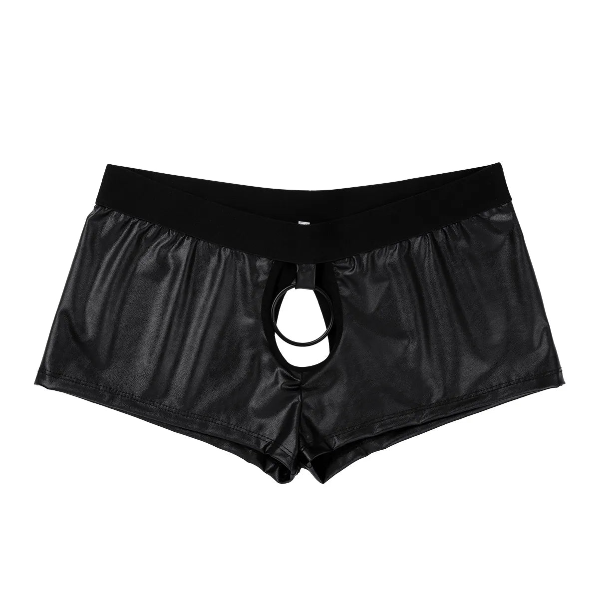 Mens Lingerie Latex Panties Leather Underwear Exotic Sex Underwear Hot Sexy Cut Out Boxer Shorts with Ball Lifter Penis Hole